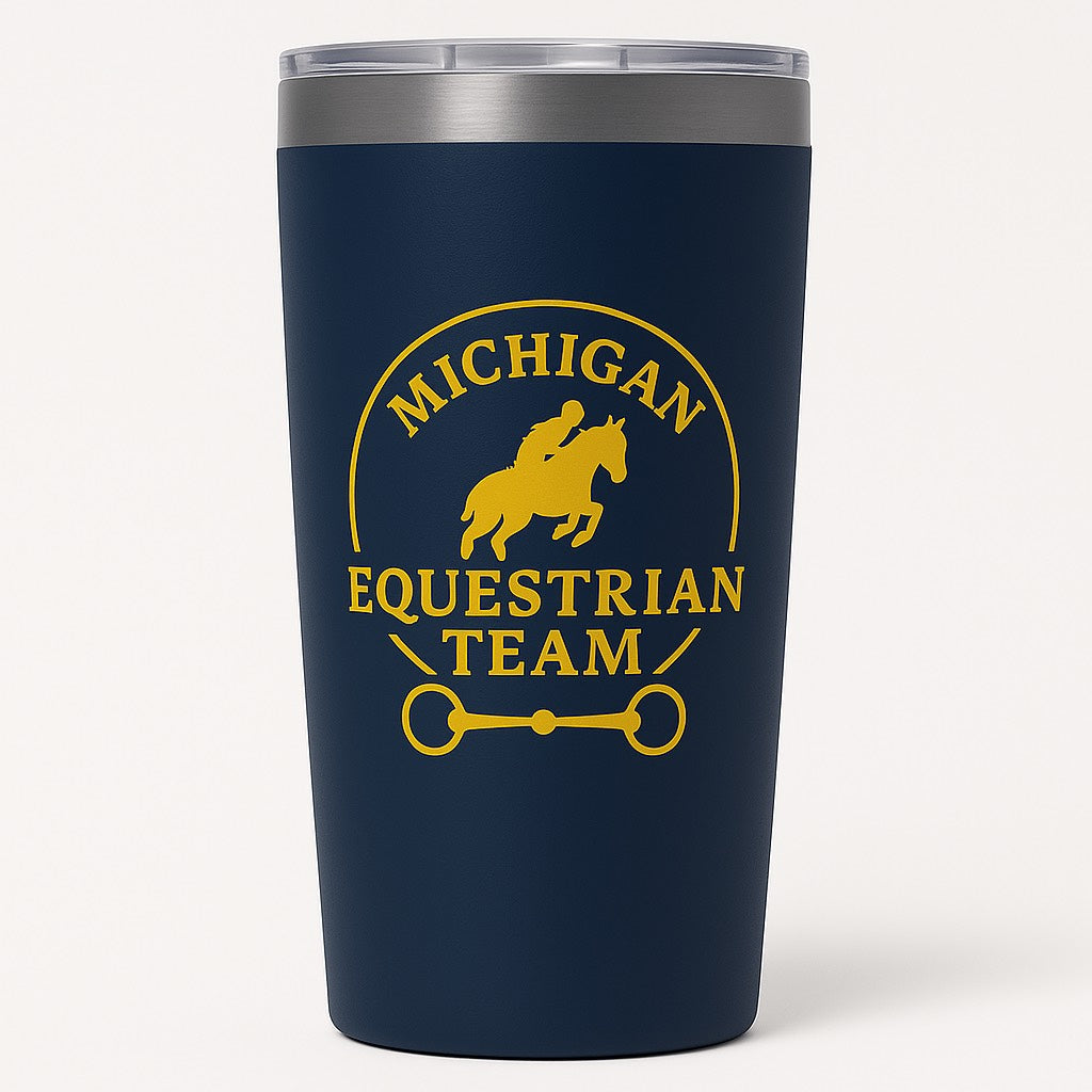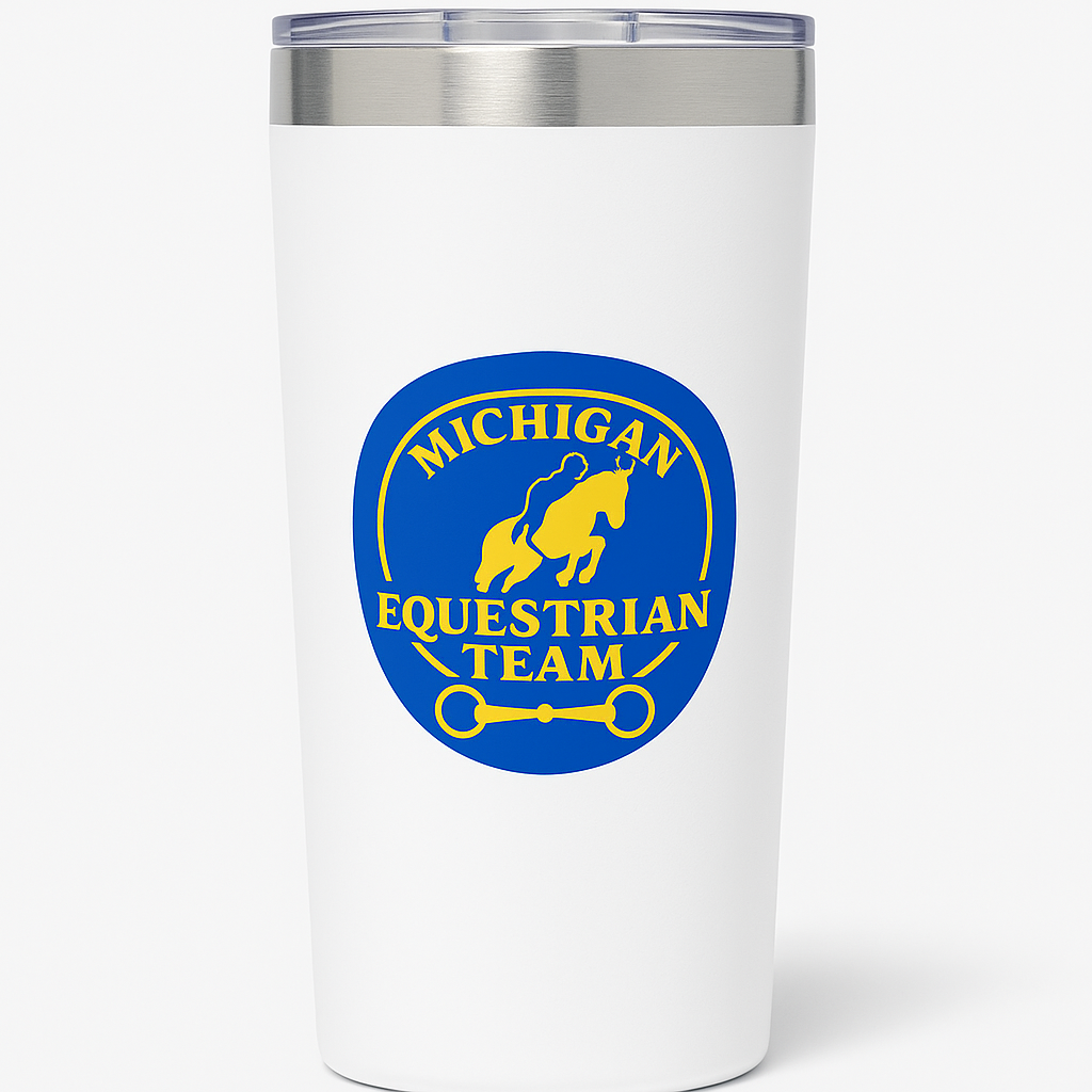 Plum-Powder Coat White Tumbler with spill proof push lid with the new UMET Logo.